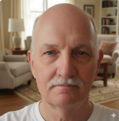 60 years old. grey hair. Lives in south Sweden. Enjoys calmness, if it is possible these days.